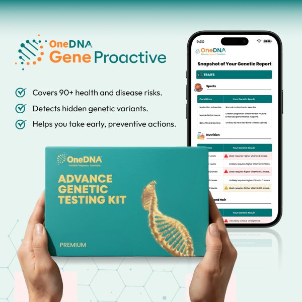 OneDNA Gene Proactive offers insights into your genetic predispositions for 90+ health conditions, traits, chronic diseases, and carrier status.